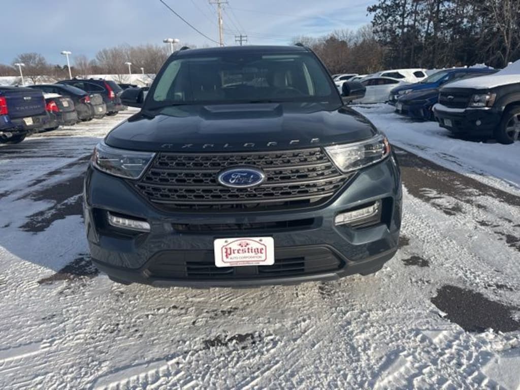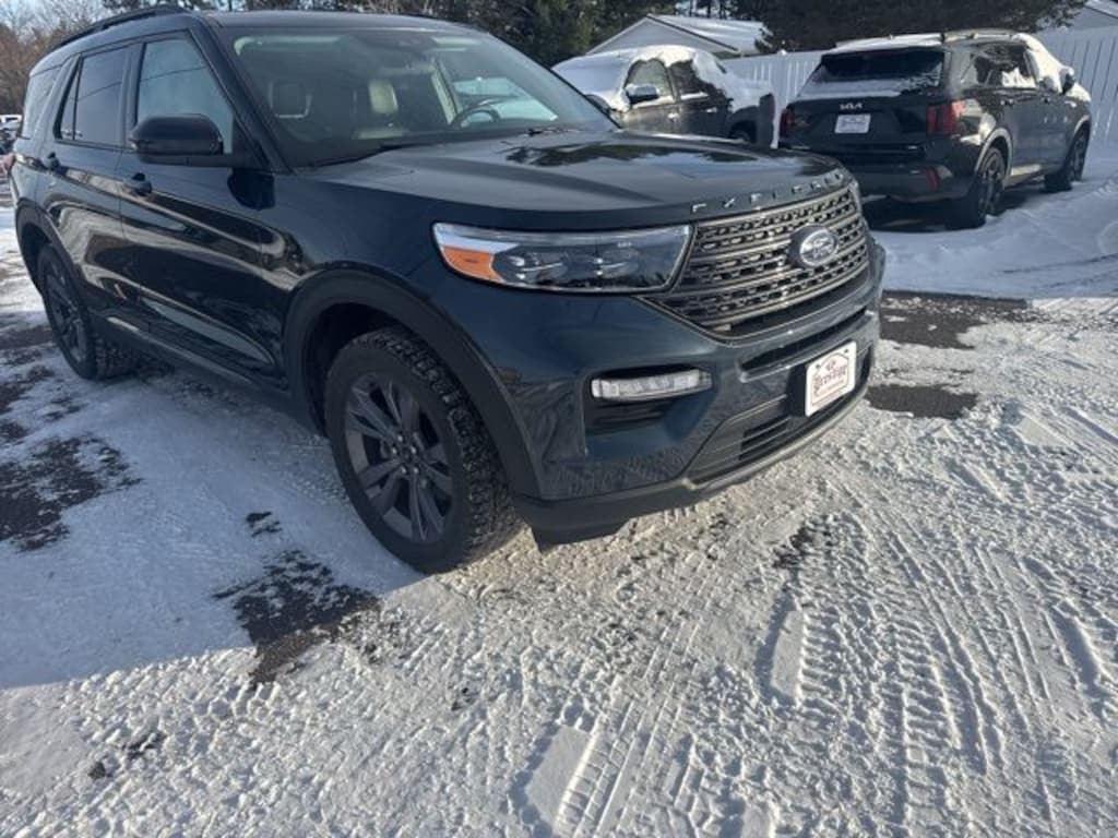 Stone Blue Metallic 2023 Ford Explorer XLT 4WD 10-Speed Automatic 2.3L EcoBoost I-4 3.58 Non-Limited-Slip Rear Axle Ratio, 4G LTE Wi-Fi Hotspot Credit, Auto High-beam Headlights, Brake assist, Class IV Trailer Tow Package, Delay-off headlights, Dual Chrome Exhaust Tips, Dual front side impact airbags, Four wheel independent suspension, Front Center Armrest, Heated door mirrors, Heated Unique Cloth Captain's Chairs, Knee airbag, Leather steering wheel, LED Fog Lamps, Low tire pressure warning, Occupant sensing airbag, Outside temperature display, Panic alarm, Passenger door bin, Power door mirrors, Rear air conditioning, Rear reading lights, Roof rack: rails only, SecuriCode Keyless Entry Keypad, Speed control, Speed-sensing steering, Speed-Sensitive Wipers, Steering wheel mounted audio controls, Tachometer, Telescoping steering wheel, Tilt steering wheel, Trip computer, Variably intermittent wipers, Wheels: 18" 5-Spoke Silver-Painted Aluminum.