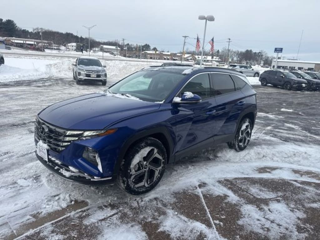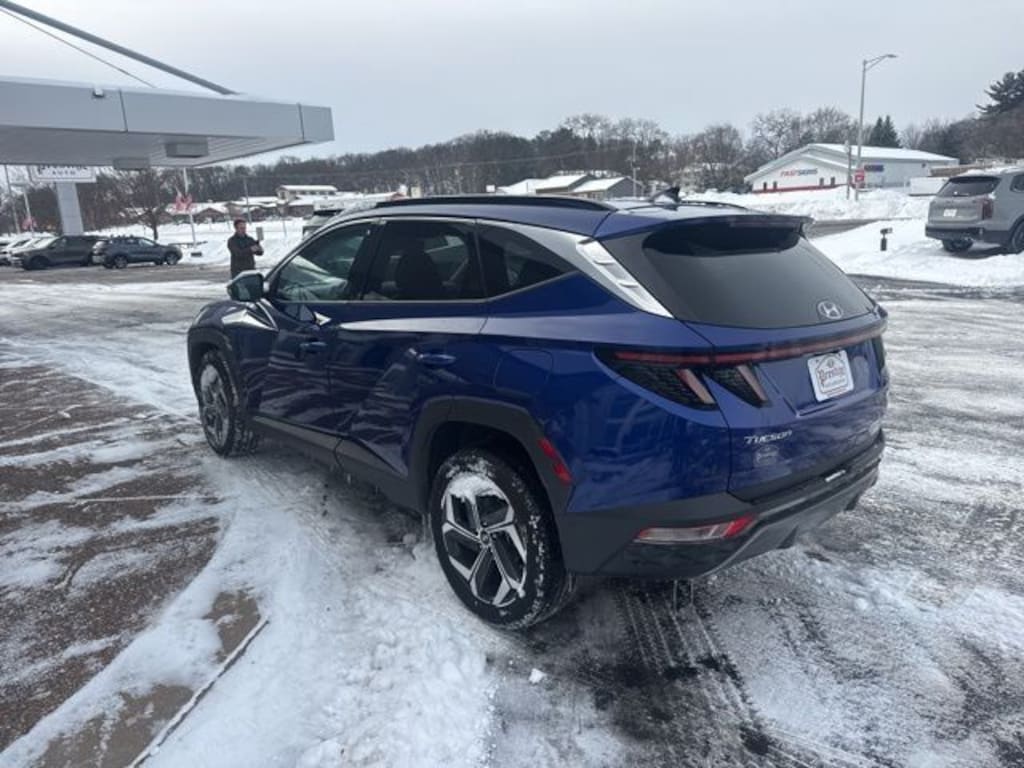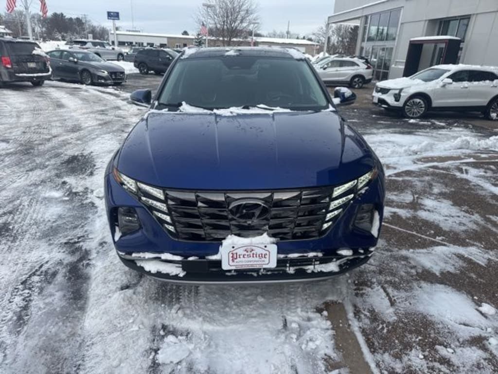 Intense Blue 2024 Hyundai Tucson Limited AWD 8-Speed Automatic with SHIFTRONIC 2.5L I4 DGI DOHC 16V LEV3-SULEV30 187hp **ONE OWNER**, 8 Speakers, Delay-off headlights, Front Center Armrest, Low tire pressure warning, Navigation System, Occupant sensing airbag, Option Group 01, Outside temperature display, Overhead airbag, Overhead console, Panic alarm, Radio data system, Radio: Bose Premium w/AM/FM/HD Audio System, Rear reading lights, Roof rack: rails only, Split folding rear seat, Tachometer.