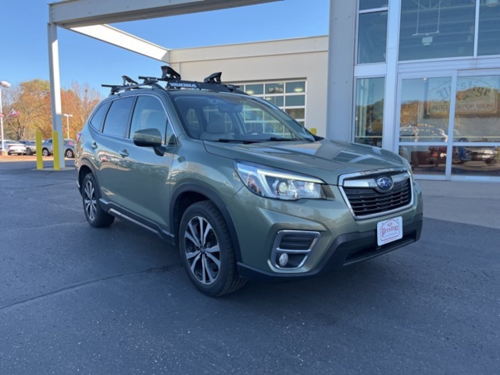 Jasper Green Metallic 2019 Subaru Forester Limited AWD Lineartronic CVT 2.5L 4-Cylinder DOHC 16V VVT **LOCAL TRADE IN**, 3.70 Axle Ratio, 6 Speakers, Auto-Dimming Exterior Mirror w/Approach Lighting, Auto-Dimming Mirror w/Compass & HomeLink, Cargo Net, Dome Light LED Upgrade, Emergency communication system: STARLINK Safety and Security, Four wheel independent suspension, Front Bucket Seats, Front Center Armrest, Front reading lights, Illuminated entry, Leather Shift Knob, Occupant sensing airbag, Overhead console, Panic alarm, Perforated Leather-Trimmed Upholstery, Radio data system, Radio: Subaru Starlink 8.0" Multimedia Plus System, Rear Bumper Cover, Rear seat center armrest, Speed-sensing steering, Split folding rear seat, Tachometer.